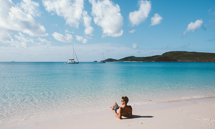 Soak up the tropical sun rays and feel the white soft sand between your toes at Whitehaven beach.